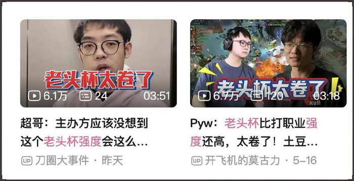 这次老头杯大概是近年来刀斯林们最过瘾的一回。每天都有新内容,从晚上7点开始全程高能不断,很多老哥下班后开启“监控室大爷”模式,同时开好几个直播间,直呼眼睛不够用。