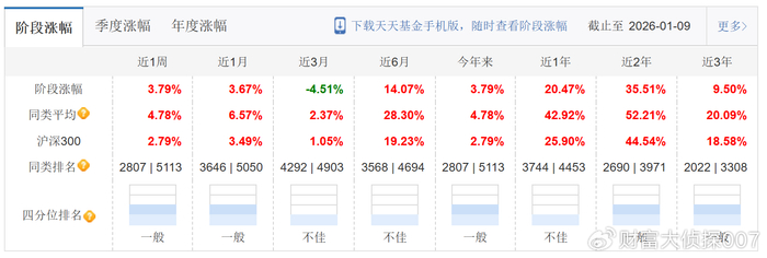 (东方红权益代表作东方红启恒三年持有B的业绩惨不忍睹。数据来源:天天基金,截至2026年1月9日。)