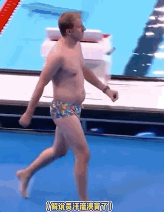 女子100米蛙泳预赛时,一个穿着花裤衩、身材走形的男士闯入泳池,解说都迷惑了:“看身材不像运动员”“这位不速之客是在表演吗?”