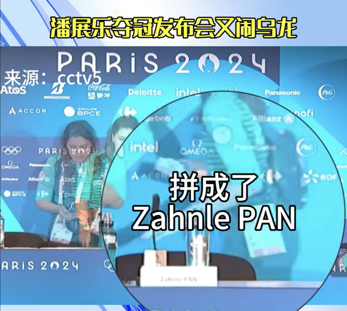 潘展乐100米自由泳夺金的赛后采访,奥运工作人员再次拼错名字,发现后直接把金银铜牌几位选手的名牌全部撤了。