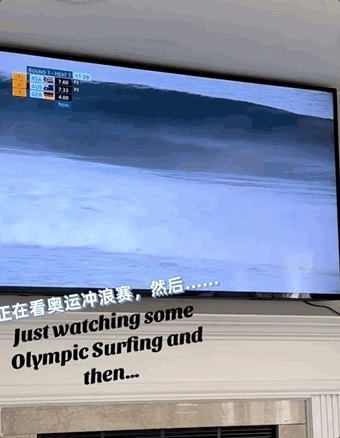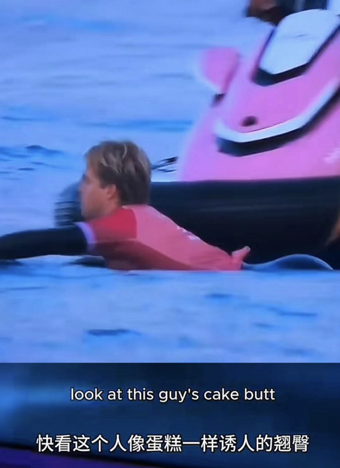 当然还有更小众的出圈方式,譬如说德国冲浪选手在比赛时,一个大浪打过来,他就这么坦坦荡荡地向全世界展现了他的屁股。
