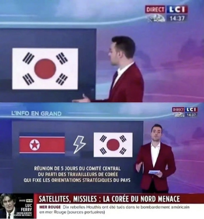 惹韩国人生气,这才刚刚开始,接下来新闻台又把韩国国旗画错了,而且画错的成韩国和日本的合并版,怎么地,又开始指点江山,合并版图了吗?