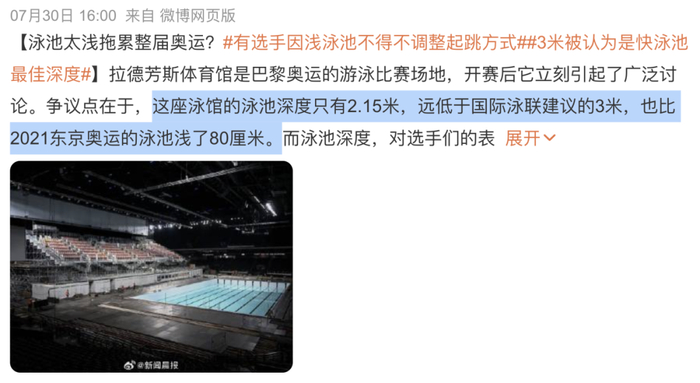按理水越深波浪越难形成,越有利于运动员发挥,巴黎的浅水池使得大家比赛结果普遍慢了不少。