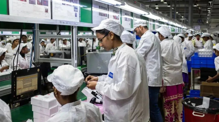 印度,富士康科技有限公司旗下手机工厂里,员工们正在工作