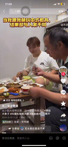 (来源:抖音@二宝子老舅)他学着老爸的样子念念叨叨:
