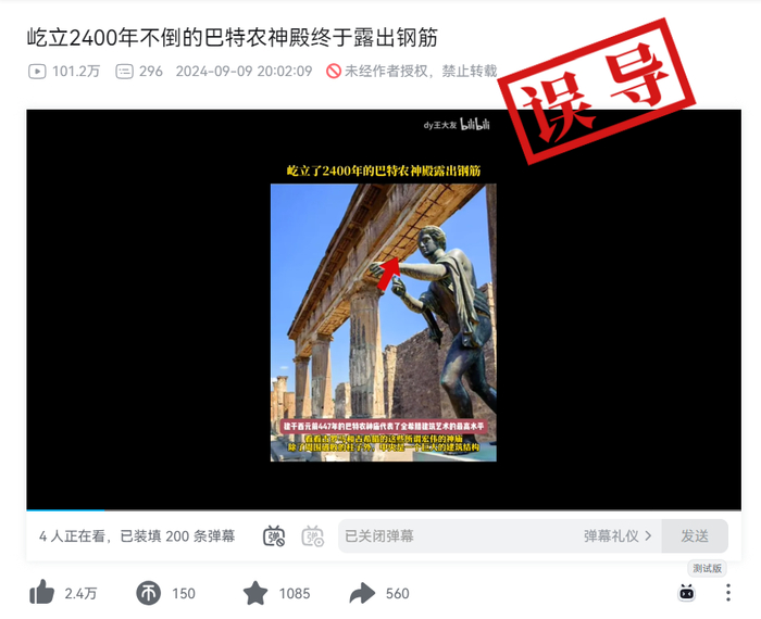 综上所述,网传所谓“帕特农神庙终于露出钢筋水泥”,暗示该古建筑为后期伪造的说法,是由于历史上古迹修复和重建工作中使用了现代建筑材料造成的误解。帕特农神庙建于公元前5世纪,原始建筑材料为大理石。19世纪初,希腊的工程师在修复神庙的北廊柱时,首次使用了钢筋水泥等现代建筑材料,这些材料并非神庙本身原始的部分,也不意味其在建造时就使用了钢筋混凝土,更无法得出其为后期伪造的结论。此外,使用钢筋水泥来修复帕特农神庙被发现对其结构和外观造成了严重损害,目前,希腊已成立专门的修复委员会来对该遗迹进行原样修复。
