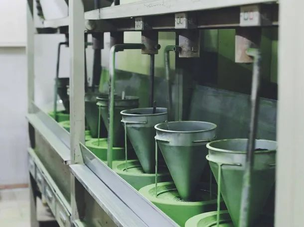 石磨的特殊设计保证了成品的极小粒度,而其在摩擦过程中不易产热的特征,更是研磨过程中抹茶颜色和风味物质不被破坏的保证。极细的抹茶粉在制成茶汤后不易沉淀,入口更是浓郁却几乎毫无颗粒感。