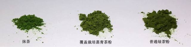 真正的抹茶粉明显颜色鲜艳翠绿,覆盖栽培蒸青茶粉绿色浅且略带黄色,而普通绿茶粉则是带着暗黄的墨绿色。