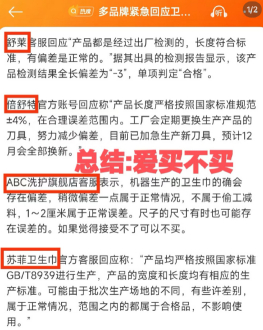 甚至有企业把锅推给了生产卫生巾的刀具。