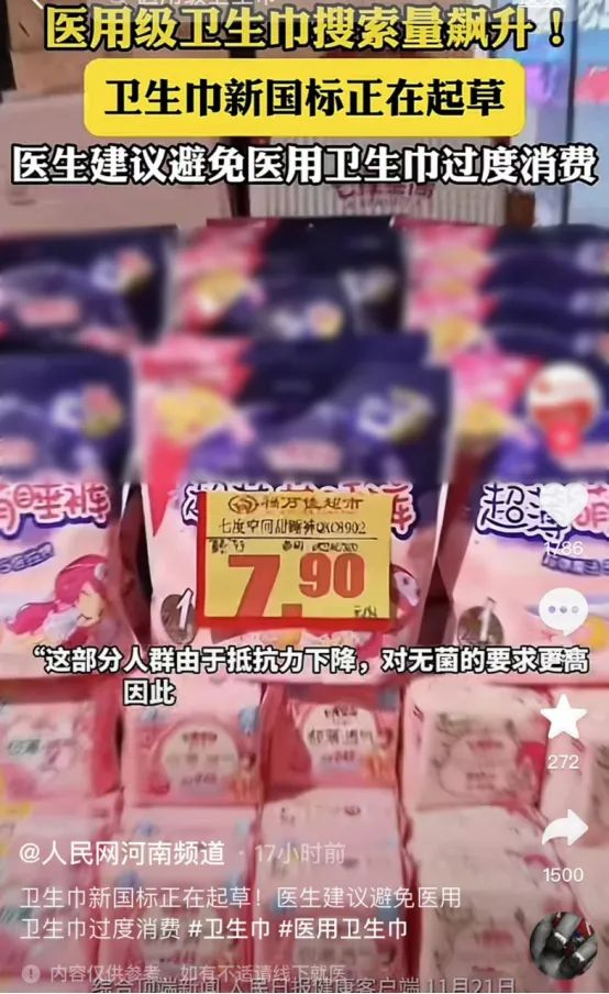 有网友说,自家宠物用的隔尿垫,标准都比某些卫生巾要高。