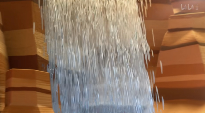 同样是“水”,片中的沙滩和瀑布就使用了不同的材质和表现方法最后,我们不妨再把视角放到本片的背景上。不用过分注意,观众就会发现其背景美术的风格在很大程度上受到了印象主义的影响,尤其注重对光的描绘以及色彩的使用。无论是白天或黑夜,片中的背景都能给人留下不同、而又非常深刻的印象。