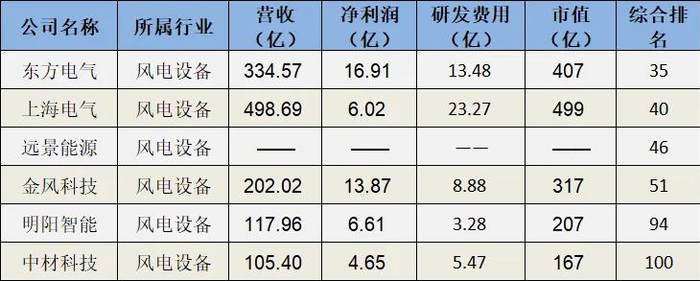 风电企业入围名单为东方电气、上海电气、远景能源、金风科技、明阳智能、中材科技。