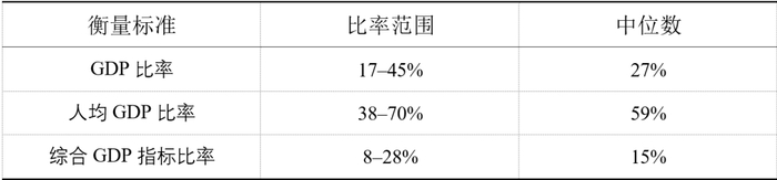 首先作者评估了中国的经济实力。20世纪80年代以来,中国经历了高速的经济增长。直至2018年,中国经济以每年约10%的速度增长。1979年至2018年期间,中国经济规模每八年翻一番。根据对中国GDP总值和综合GDP指标的计算,作者认为,中国的经济实力不仅远远超过了大国的中位数水平,而且远远超过了大国的正常范围(见表5)。