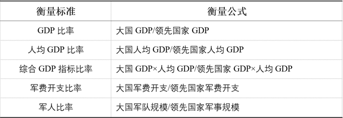 作者对国际权力结构、国家实力及其衡量标准进行了梳理。大国在国际政治中至关重要,因为当大国间争夺影响力和控制权时,其行为会影响全球政治稳定、繁荣和国际秩序。大国的数量也会影响国际政治的动态,不同的权力结构(即单极、两极和多极)会带来不同程度和类型的风险,大国间权力平衡的转变会增加危机和战争的风险。部分学者认为,多极体系(三个或三个以上大国)是最不稳定的,因为其中大国数量较多,增加了结盟的重要性、流动性和不确定性。而两极体系相对更稳定,该体系减少了多极体系所具有的流动性和误判,致力于保持二者间经济、军事和技术实力的平衡。单极体系则是三种权力结构中最稳定的,单极大国的存在可以降低因误判而引发战争的风险。