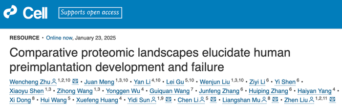 2025 年 1 月 23 日,中国科学院脑智卓越中心/上海脑科学与类脑研究中心刘真、孙怡迪、朱文成,复旦大学附属中山医院生殖医学中心木良善及上海交通大学医学院李辰等人合作,在国际顶尖学术期刊 Cell 上发表了题为:Comparative proteomic landscapes elucidate human preimplantation development and failure 的研究论文。