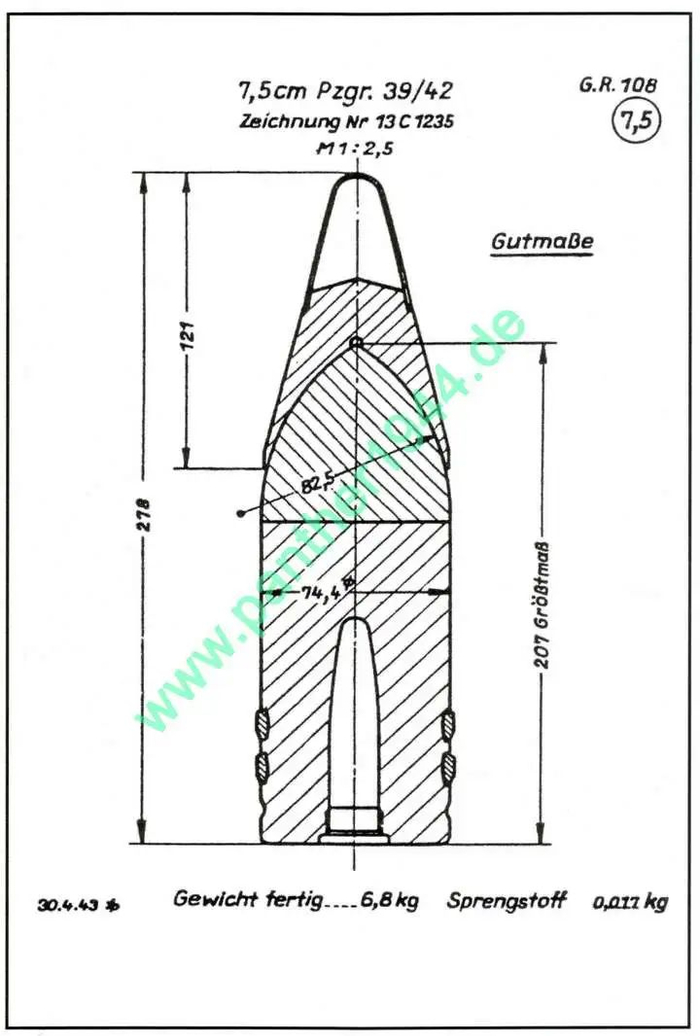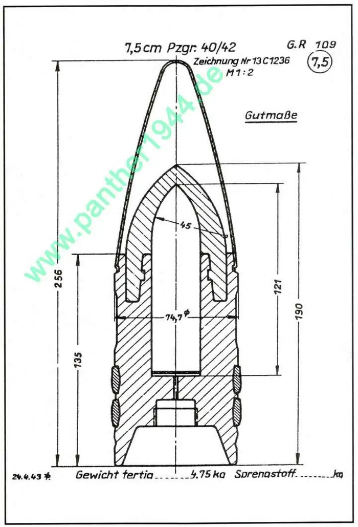 图10、11:KwK.42坦克炮使用的两种穿甲弹