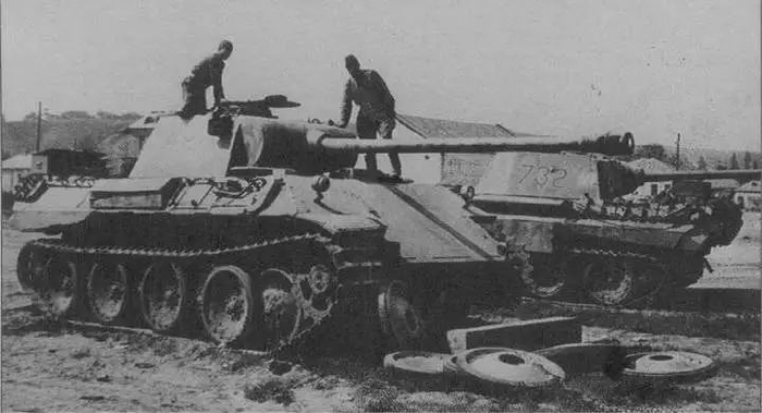 不过,黑豹D凶狠的战斗性能还是让苏军印象深刻,譬如7月14日当天有不少苏军坦克是被黑豹D在1500-2000米距离上直接击毁的,而装备该车的第39装甲团在7月5日-15日硬是摧毁了269辆苏军坦克。黑豹D自身也有不少因机械故障或战斗受损被车组遗弃,其中相当一部分都落入了苏军之手。黑豹坦克因为重量被苏军定义为重型坦克,而在苏军官方文件中,黑豹D坦克和后续型号均被命名为T-V或是T-5,其中“T”是俄语“Танк”的首字母,意思是坦克。因此,T-V一词其实与Pzkpfw.V一样,都是指“5号坦克”。苏军也会将该坦克称作Пантера,意思是“豹子”。
