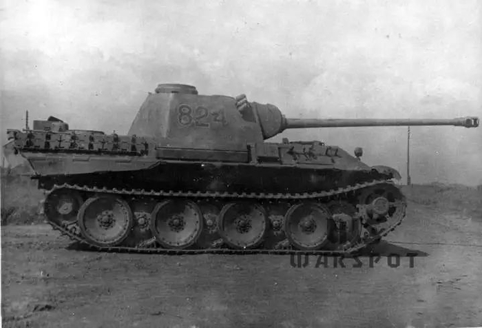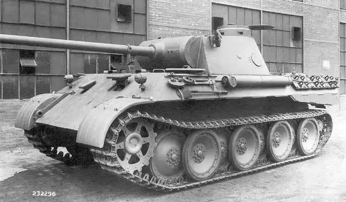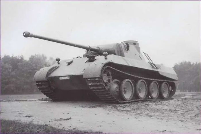 1942年9月16日,安装了炮塔的VK.3002(M)V2原型车接受了测试,一举获得成功,于1943年1月正式开始量产。该车被德国陆军命名为“Panzerkampfwagen V”,简称“Pzkpfw.V”,意思是“5号坦克”,代指该车是二战德国装备的第五款坦克。该坦克被官方取的代号是“Panther”,意为“黑豹”,因为该车在动力装置一样的情况下有着明显优于虎式坦克(Tiger)的机动性能,就像那迅捷的豹子。不过作者在这里有个疑问:为何早在1942年8月就已经参战的虎式坦克会被称作“6号坦克”,而1943年才开始量产的黑豹反而是“5号”?