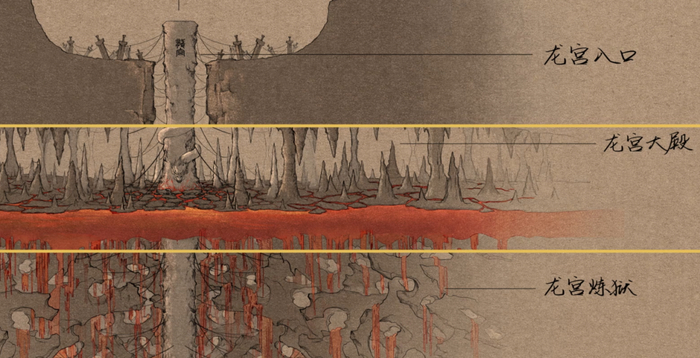 ▲ 海底炼狱的概念图。分镜出来后,动画师、特效师也一起进入,讨论说这东西这么复杂,要怎么落地。这个过程中,也走过了很多弯路,不断试错很多遍,才找到了一条确定的方向。结果,在制作的时候,又会遇到比如说硬件吃不消或者画面的质量提不上去之类的问题,导致我们推翻了原来的思路,重新找另外一条路。