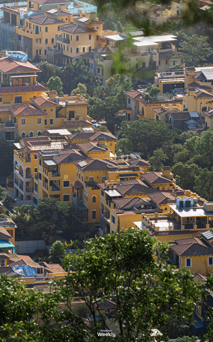 这里能看到宝安最庞大的别墅群,橙黄的房子聚集在一起,还真有青岛海边洋楼的韵味。