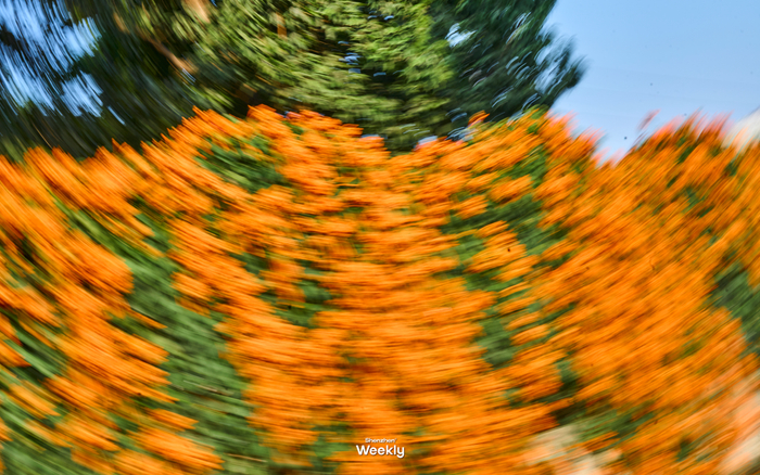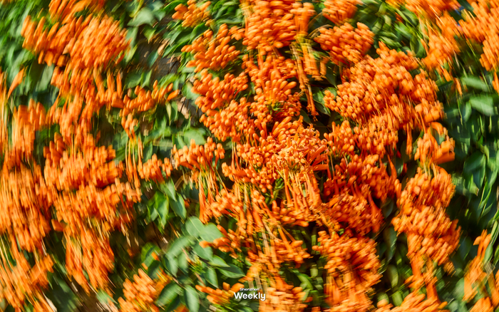 这里的花海,不仅景美,更重要的是人少安逸」。远看如霞似火,近看耀眼绚丽,整片整片的炮仗花簇拥在一起,视觉感官上尤为震撼。