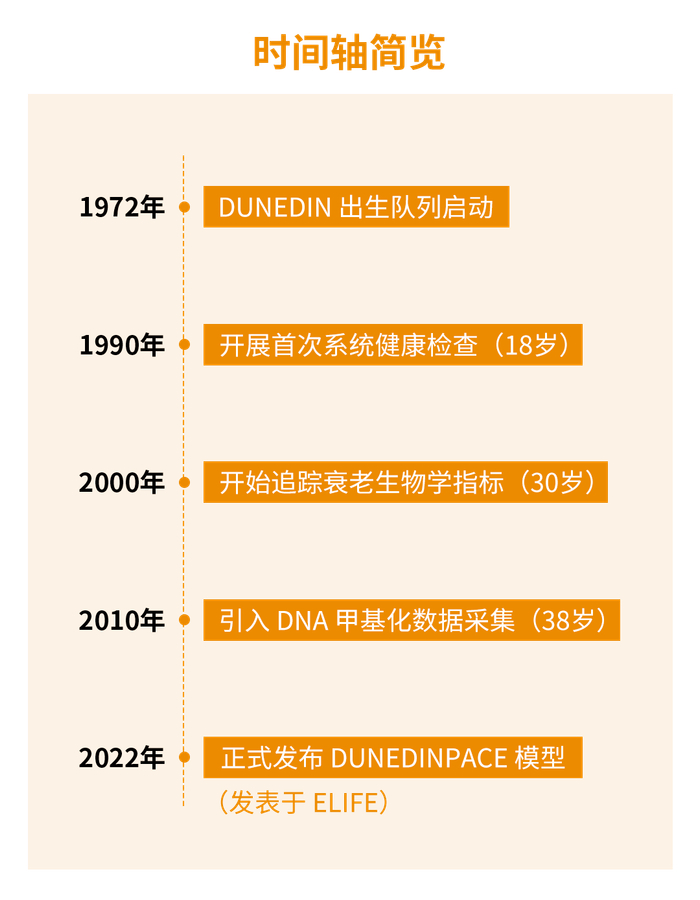 长期队列的研究难度极大,但不可替代。DunedinPACE模型由新西兰Dunedin出生队列开发,研究对象为1972–73年出生人群,至今已连续随访超过40年5。
