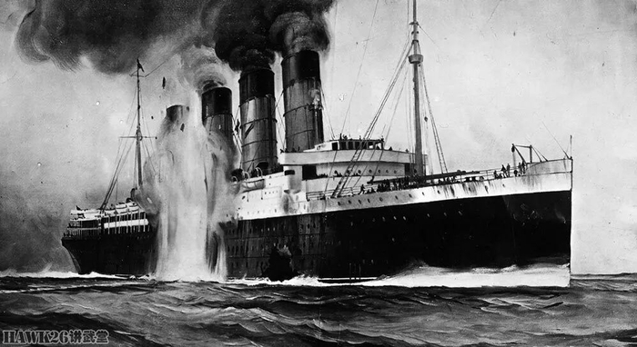鱼雷击中“卢西塔尼亚”号邮轮。