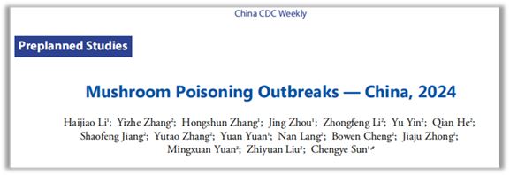 近日,中国疾病预防控制中心职业卫生与中毒控制所李海蛟、孙承业等在China CDC Weekly (Vol 7, No.19) 上发表了题为“Mushroom Poisoning Outbreaks — China, 2024”的文章,报告了中国2024年的蘑菇中毒事件信息,此次共调查了28个省级行政区的599起蘑菇中毒事件,共影响了1486名患者,导致13人死亡,病死率为0.87%。