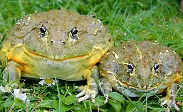 雄性非洲牛蛙(左)雌性非洲牛蛙(右)体型对比