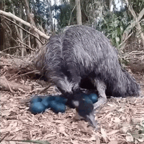 在孵蛋或者育雏期间,鹤鸵或者鸸鹋爸爸是非常辛苦的。他们会趴在窝巢上孵化八周鸟蛋。期间通过移除或者添加落叶来调节温度。在孵蛋期间,鸟爸爸有时候不吃不喝也不排便。在八周的孵化期结束后,它的体重最多会减少1/3!小鸟出壳以后,鸟爸爸还要承担长达1年的育雏任务。可见它们的确是尽职尽责的“男妈妈”。
