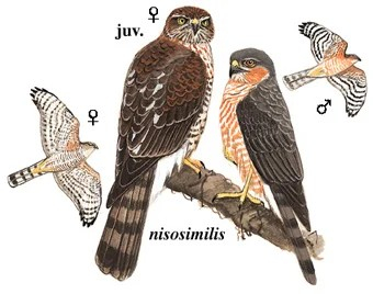 雌雀鹰(左)和雄雀鹰(右)体型对比