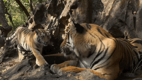 纪录片《王朝》里拍到这只小母虎遇见爸爸,爸爸是森林里唯一不会伤害她的公虎,也会和她分享水坑。
