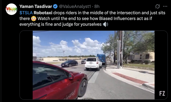 特斯拉Robotaxi失误、宕机的素材不是没有,只不过要非常仔细地搜索。