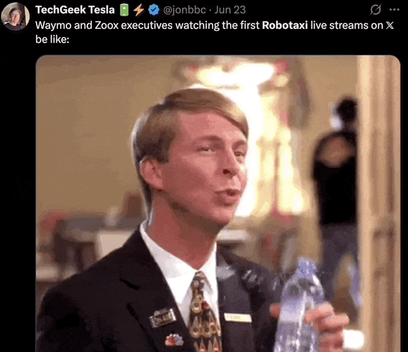 还有人调侃Waymo、Zoox高管现在应该是瑟瑟发抖的状态: