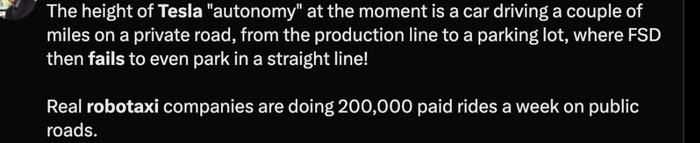 比如有网友质疑,特斯拉Robotaxi车队有序自主进出停车场的视频,可能就是摆拍的。