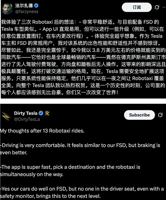 第一批受邀体验特斯拉Robotaxi其实人数并不多,大概只有20人左右。但不妨碍很多人连续反复体验,所以目前网络上有很多体验视频流出。