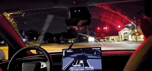 还有这个场景,特斯拉Robotaxi直接把乘客扔到了路口,然后原地呆住了…….