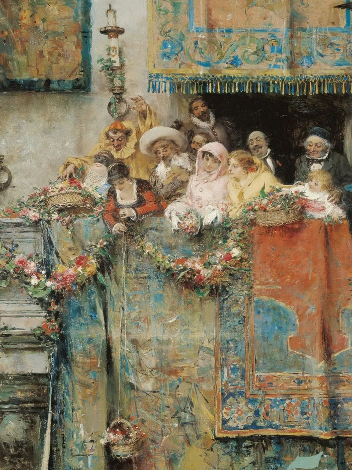 就像回到了中世纪的狂欢节:“一切等级秩序都被允许颠倒,一切荒谬都可以被大声嘲笑”。狂欢节孕育着“矛盾的笑声”,这种笑声“既是欢快的、胜利的,同时又是嘲弄的、讥讽的。它既肯定又否定,既埋葬又复活” 。