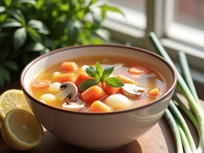 如果一顿饭中有菜、有饭、有汤,建议先喝一点汤,然后吃蔬菜。不过要注意的是,喝汤还是尽量避免肉汤这类高脂肪的食物,适当选择蔬菜汤、粗杂粮汤等低热量汤水类。