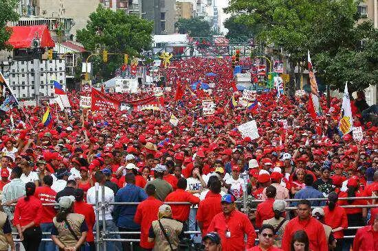 然而,正如普京的权力不仅仅来自于对反对派的打压,也来自于对民意的俘虏,查韦斯的威权化背后,同样有着汹涌的民意。2002年反对派发动政变,查韦斯的支持者立刻上街声援总统,他们身穿红T恤,把委内瑞拉的大街小巷染成了红色的海洋。