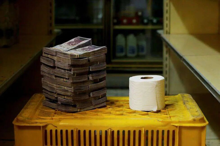 一个是通货膨胀率。根据IMF的估算,2018年这一年,委内瑞拉的通货膨胀率高达1,000,000%。这是什么概念呢?就是钱几乎没有意义了。你一个月的工资可能只能买两盒鸡蛋,三个月的工资买一瓶橄榄油,所以,才发生委内瑞拉老百姓宁愿用钱当厕纸用、也不去买厕纸的情况,因为厕纸比钱贵多了。