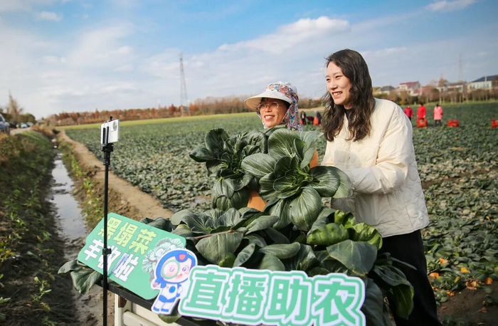 △如皋市下原镇的村民在花园头村黑塌菜种植基地直播推介如皋黑塌菜。(图/视觉中国)第一次在央视看到自己从小吃到大的黑塌菜时,在上海工作的如皋人小夏很震惊,“就像是从小都没被注意到的村里小孩,忽然有出息了衣锦还乡的感觉。”