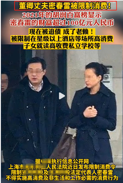 2021年年底,董卿的丈夫密春雷突然“失联”。