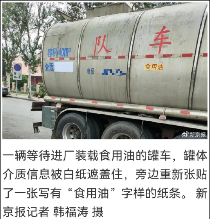 细看新京报的调查,发现他们追踪了运油车从哪里来,去哪里装油,但却没提到这些大豆油的去向。