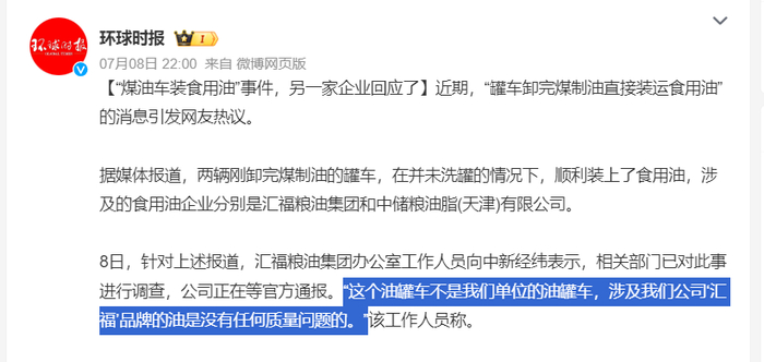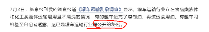 随后,几家大型粮油企业,表示他们的只管卖油,这些“散油”是由购买方自己找车来拉的,他们没法管,但他们自己的产品绝对不会出现这样的事情。