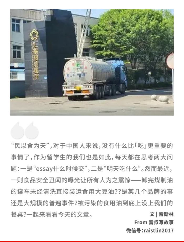 运完煤油的车,车里还残留十几升煤油呢,他们不清洗,直接就用来运食用大豆油。