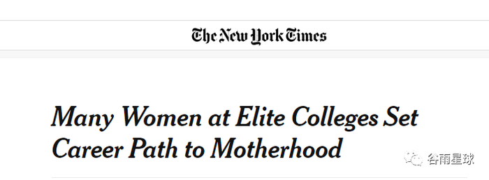 ■《纽约时报》曾发表一篇文章,讨论了很多精英大学女性毕业生做了全职妈妈。耶鲁大学机构研究办公室也曾在2000 年对 1979、1984、1989 和 1994 届耶鲁校友进行的一项调查显示,发现40多岁的时候只有56%的女性仍在工作,而男性的这一比例为90%。