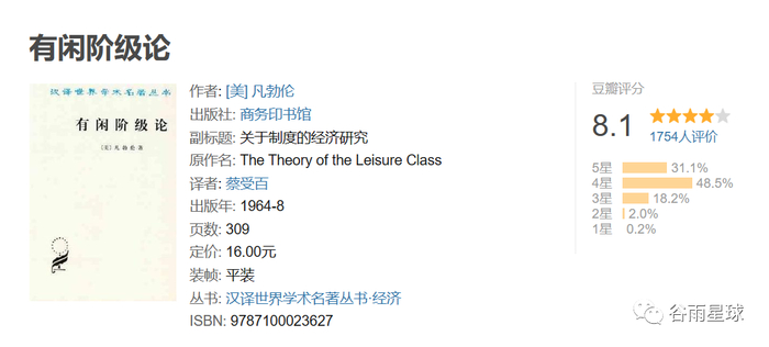 ■经济学和社会学领域的一部经典著作,里面就提到,「有闲阶级」的心理和劳动阶级不同,他们把劳动看作不体面的事情,过有闲生活才能显示比别人优越。