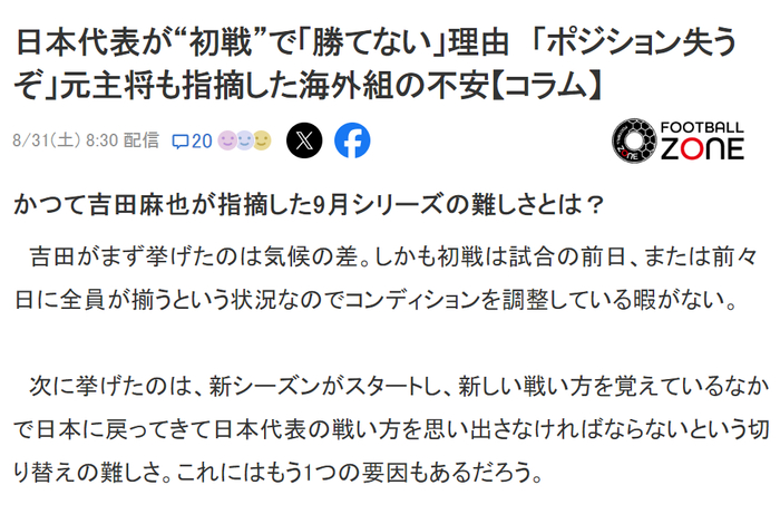 这是今天的《FOOTBALL ZONE》对日本国家队的提醒。
