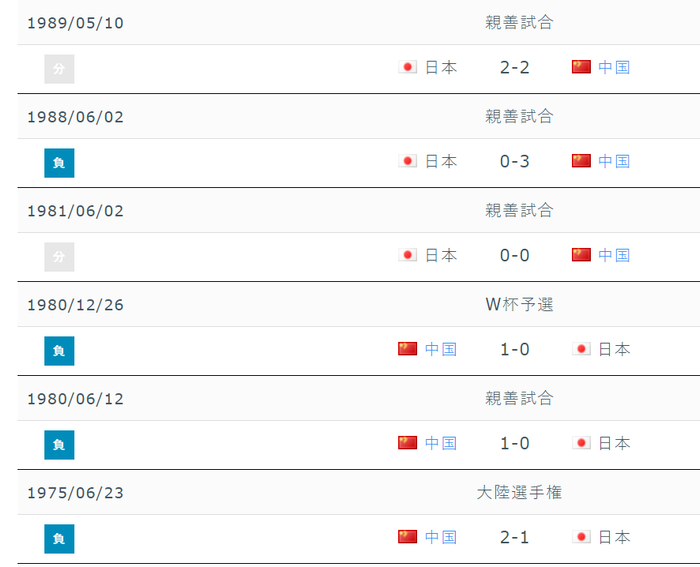 这也是中国男足对日本最后一次胜利的纪录。
